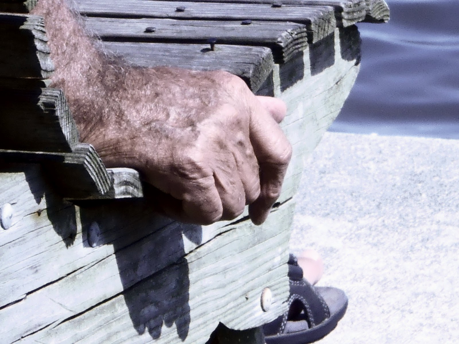 Her feet still lovely. Beautifully polished toes in summer sandals. Rocking back and forth, feeling the breeze. They've walked through this town so many times. So many summers. The sun warms her on this April afternoon.